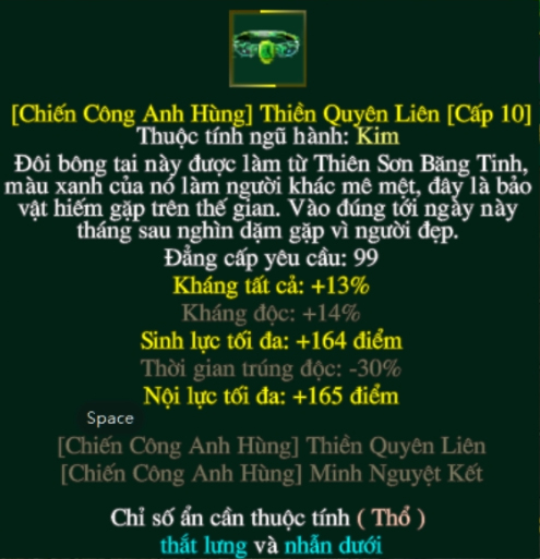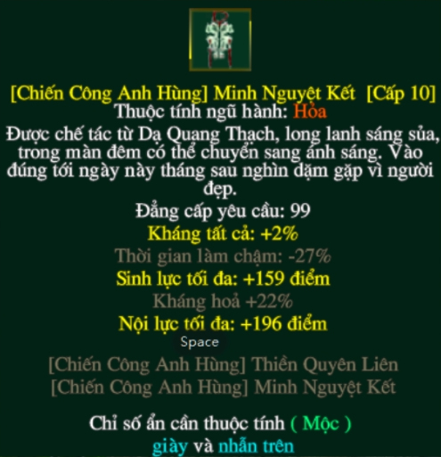 Khi mặc cả 2 trang bị Thiền Quyên Liên và Minh Nguyệt Kết, các đại hiệp có thể kích hoạt hiệu ứng kích full option ẩn cho các trang bị khác trên người.